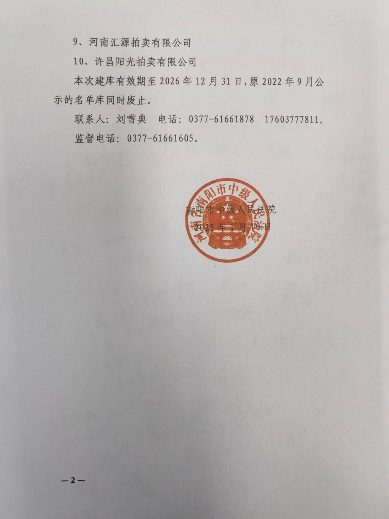 公司入選南陽(yáng)中級法院網(wǎng)絡(luò )司法拍輔機構名單庫